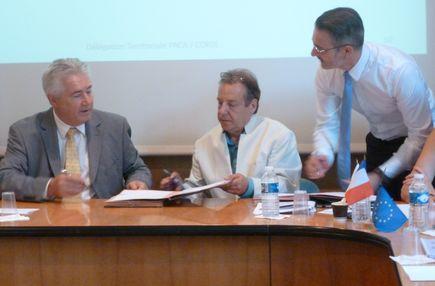 Jacques Bianchi, président de la Chambre de Commerce et d’Industrie du Var, Olivier Caire, président du Comité Paritaire PACA Corse et Bruno Jonchier, délégué territorial de l'APEC pour la région Paca ont signé, mercredi 3 juin une charte de partenar